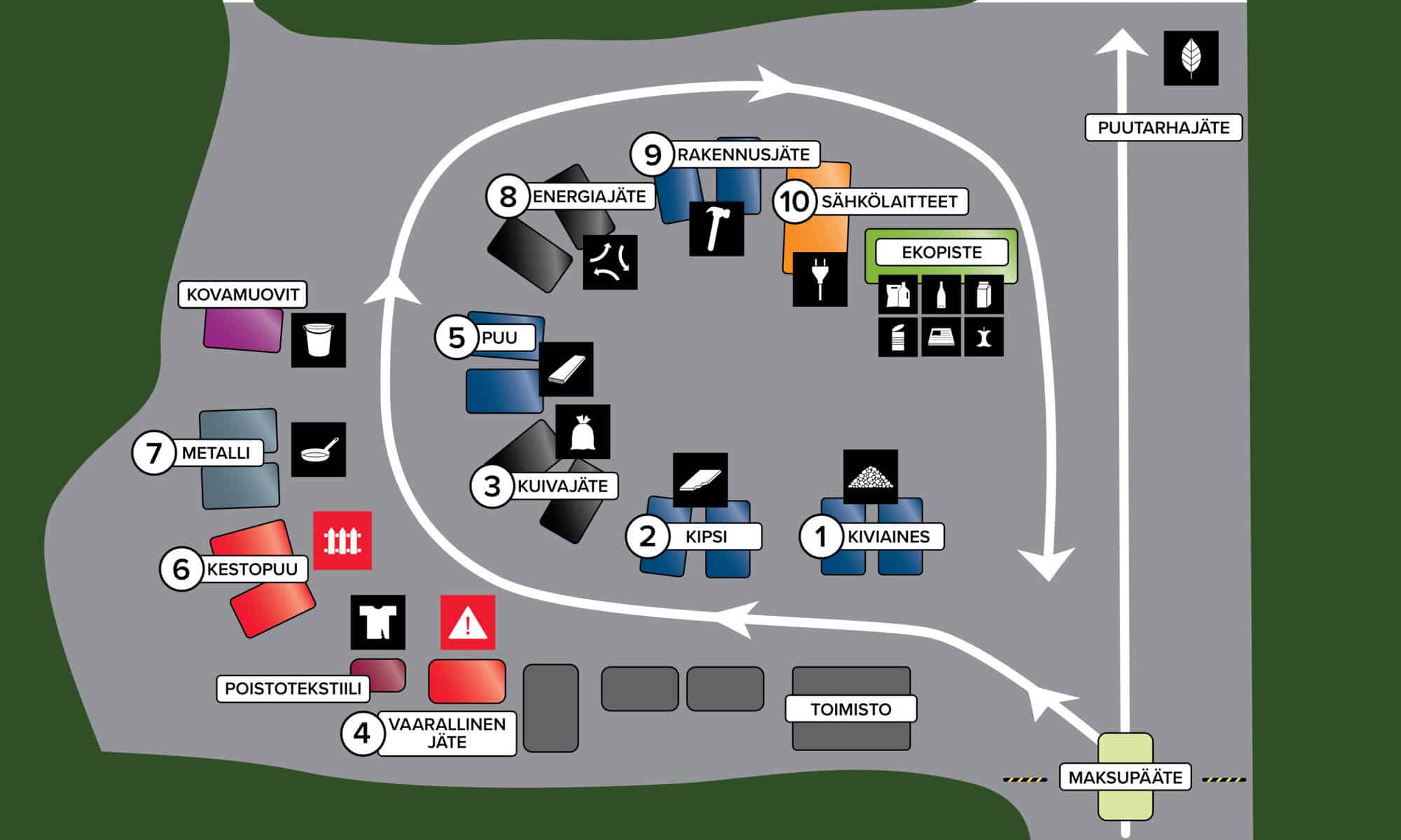 Huomioi ajosuunta ja lajitteluohjeet.